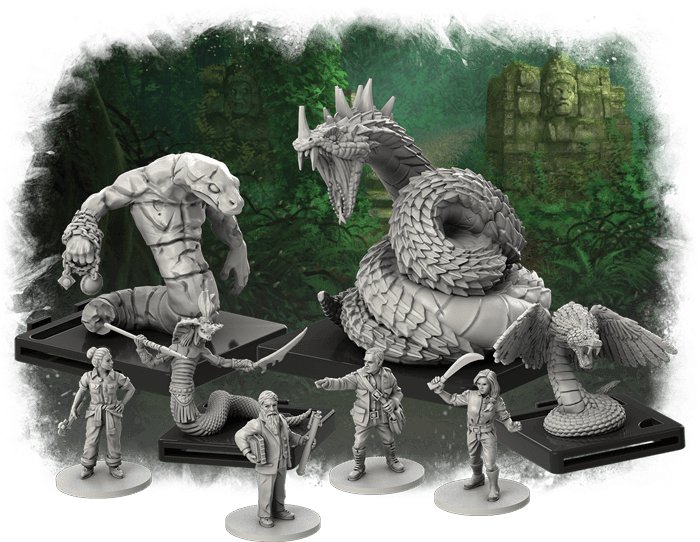 Now in Mansions of Madness, you take on the role of Arkham’s bravest investigators who must step into the unexplored wilderness of the Amazon jungle and explore crumbling ruins, discover the secrets of lost civilizations, and stop a serpent’s curse before the world descends into chaos. In three new scenarios, you will battle horrifying serpent creatures, face stone monstrosities that come to life, and beat the ever-present danger of being lost to the jungle forever.