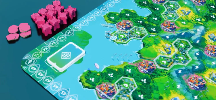 Rebirth is a new, tile-laying game from Reiner Knizia. The game revitalizes this classic genre by combining Knizia’s elegant mechanics with Mighty Boards’ evocative world building. The result is a eurogame with smooth gameplay, set in a lush and hopeful future.